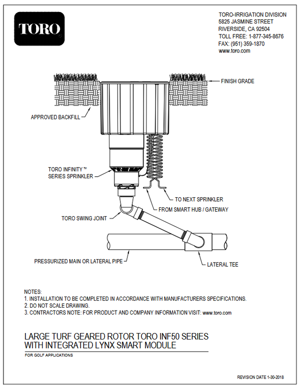 TORO INFINITY SPRINKLER BODY, RISERLESS, 1.5" DCL SOL.